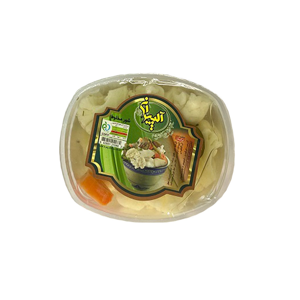 ترکیبات: گل کلم، هویج، فلفل، کرفس، خیار، سرکه، نمک، سبزجات معطر و ادویه های مجاز خوراکی